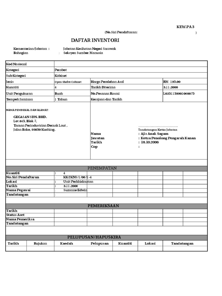 Kew Pa 3 Daftar Aset Alih Yang Bernilai Rendah