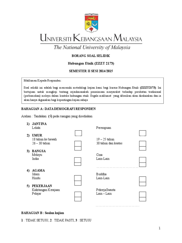 Contoh Borang Soal Selidik 2020 Banyak Contoh