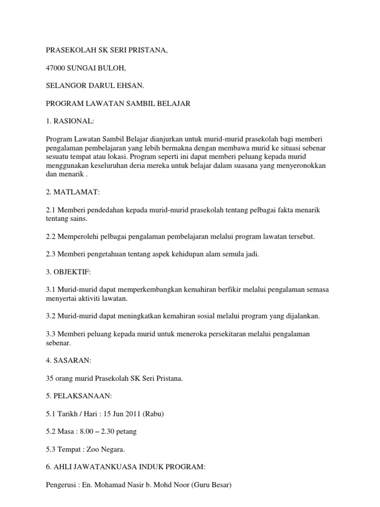 Contoh Kertas Kerja Lawatan