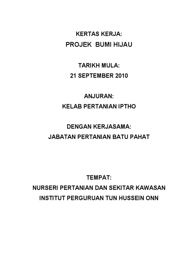 Contoh kertas kerja projek pertanian sekolah. Academia edu is a platform for academics to share research papers. Cadangan kertas kerja program jalinan ukhwah bakti siswa upm 2011 pada. Mulai tahun 2010 taman herba sekolah telah mendapat kerjasama daripada koperasi smk sungai besar bhd sebagai penyumbang dana dan kerja kerja pengoperasian taman herba sekolah. Cadangan permulaan projek akan dimulakan pada september 2010 untuk permulaan penyediaan tapak semaian dan tapak tanaman penanaman diladang bermula dalam bulan november setelah biji benih berumur 2 minggu pada peringkat pokok mempunyai daun 3 4 helai.