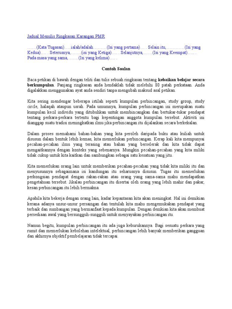 Pmr Bm Ringkasan Kebaikan Belajar Secara Berkumpulan