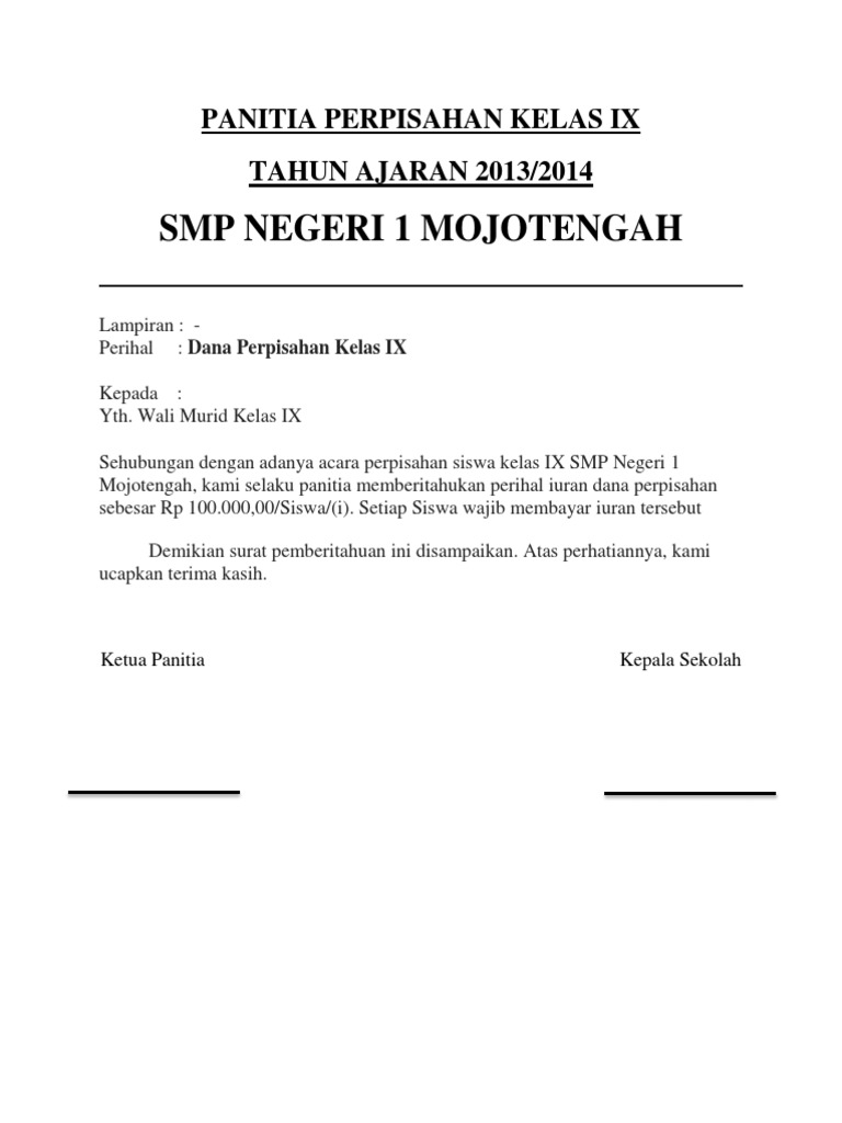 Surat Pemberitahuan Perpisahan Smpn 1 Mojotengah