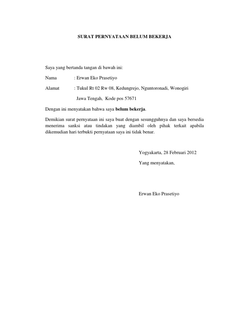 Contoh Surat Pernyataan Kerja By Karinov Co Id