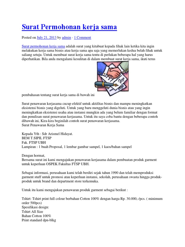 Surat Permohonan Kerjasama Usaha Rasmi H