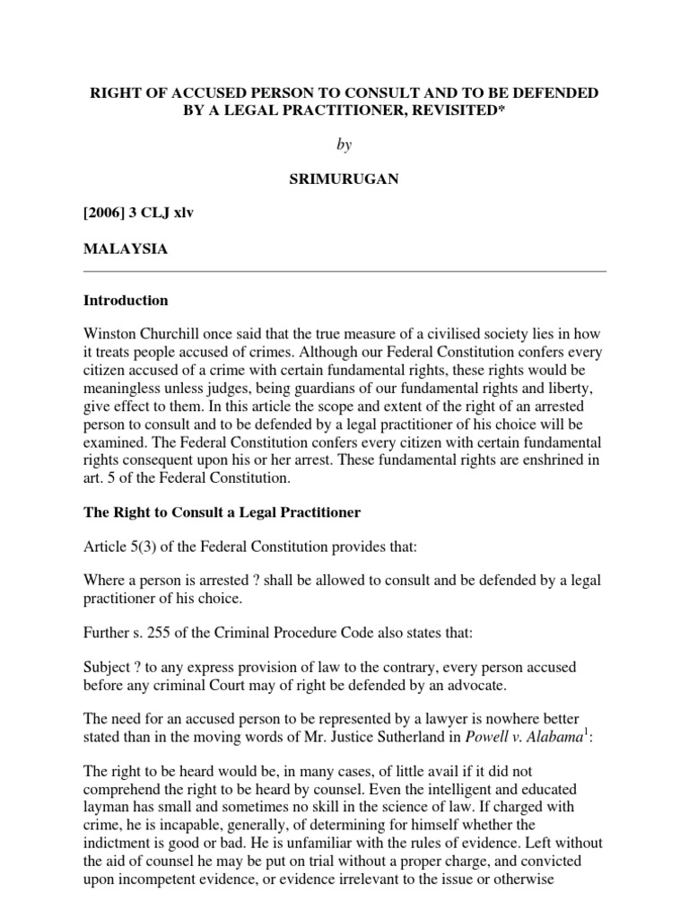Right Of Accused Person To Consult And To Be Defended By A Legal Practitioner Legal Aid Sixth Amendment To The United States Constitution