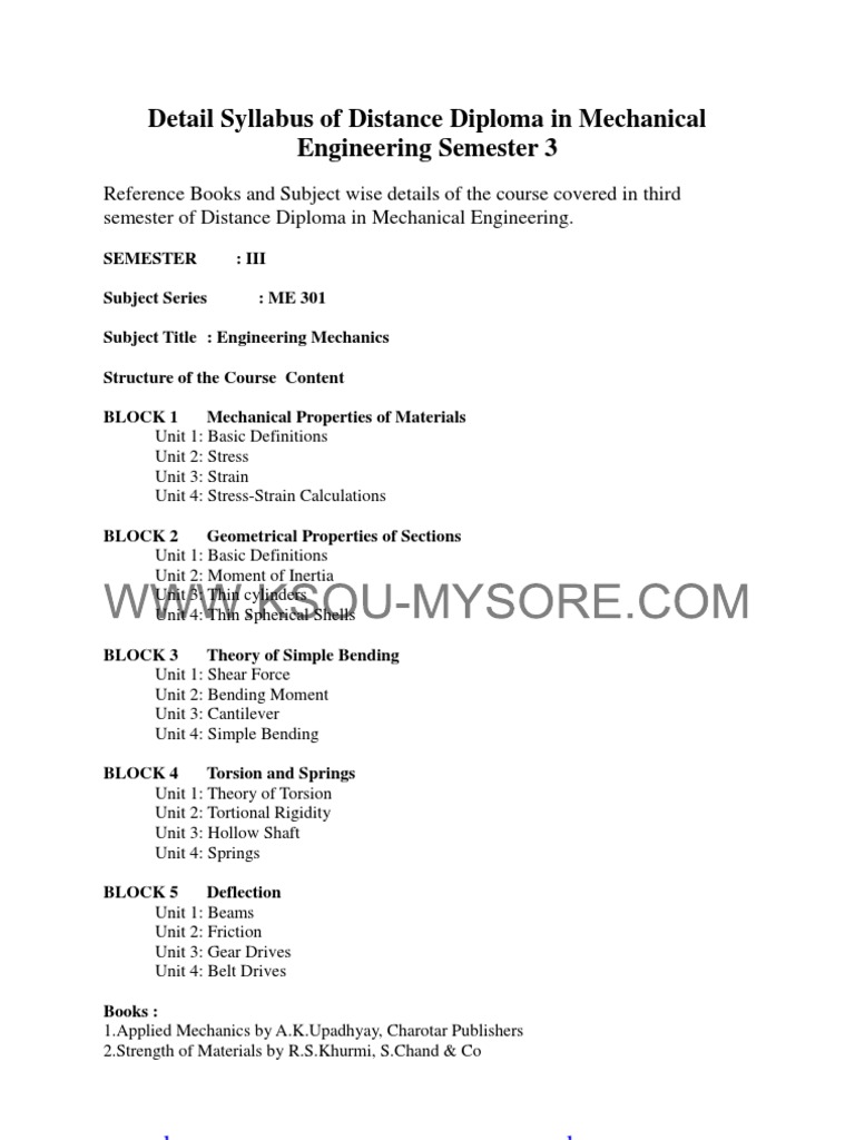 Detail Syllabus Distance Diploma Mechanical Engineering Semester 3 Bending Welding