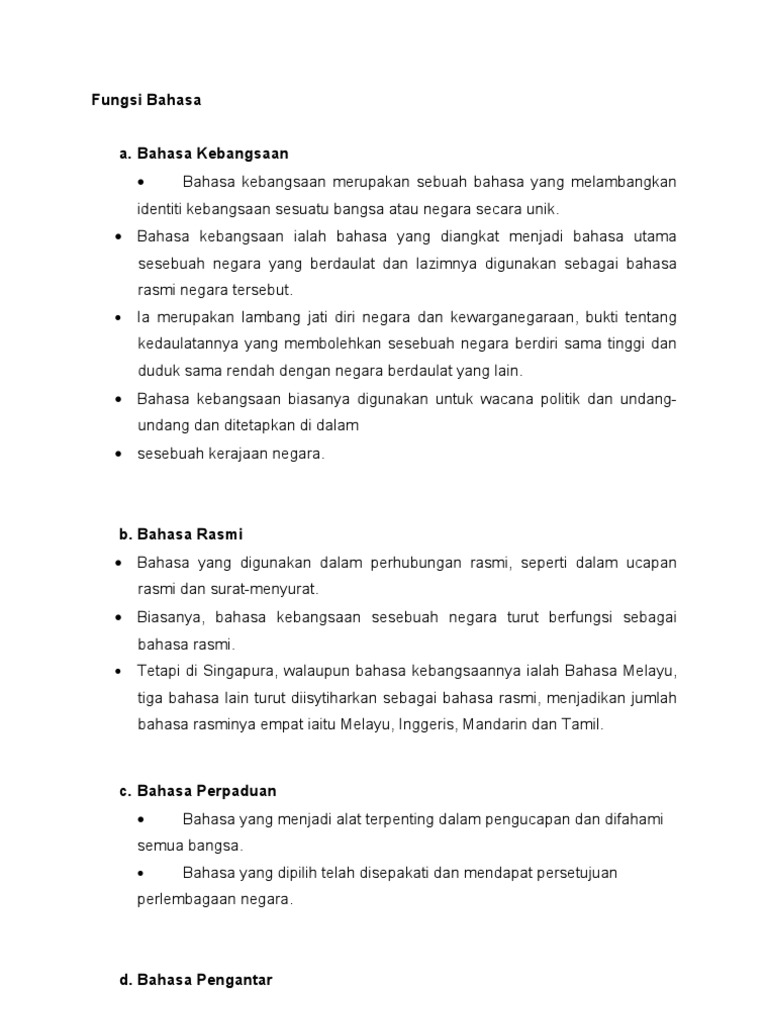 Fungsi Bahasa Melayu Sebagai Bahasa Kebangsaan Dan Bahasa Rasmi Negara