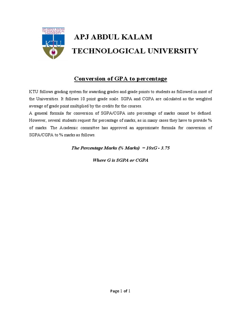 Conversion Of Gpa To Percentage Ktu Academia Statistics Of Education