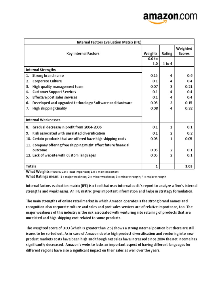 Ife Matrix Internal Factor Evaluation