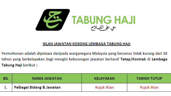 Kerja Kosong Terkini Lembaga Tabung Haji Mohon Online