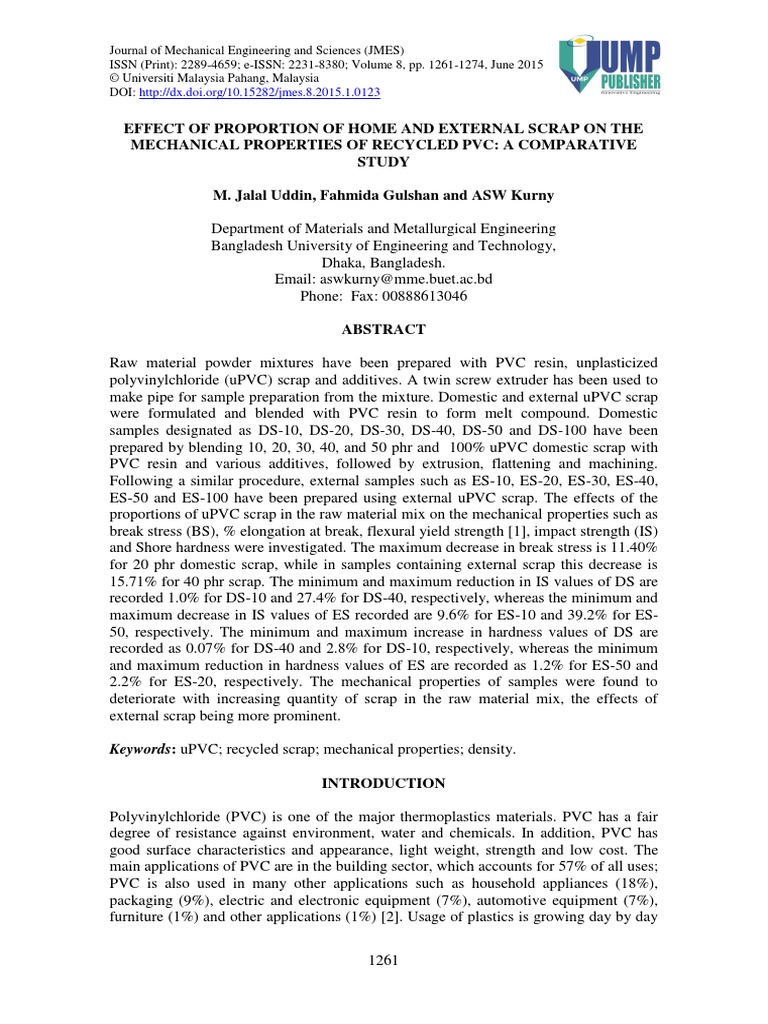 1 Jalal Uddin Et Al Pdf Polyvinyl Chloride Recycling