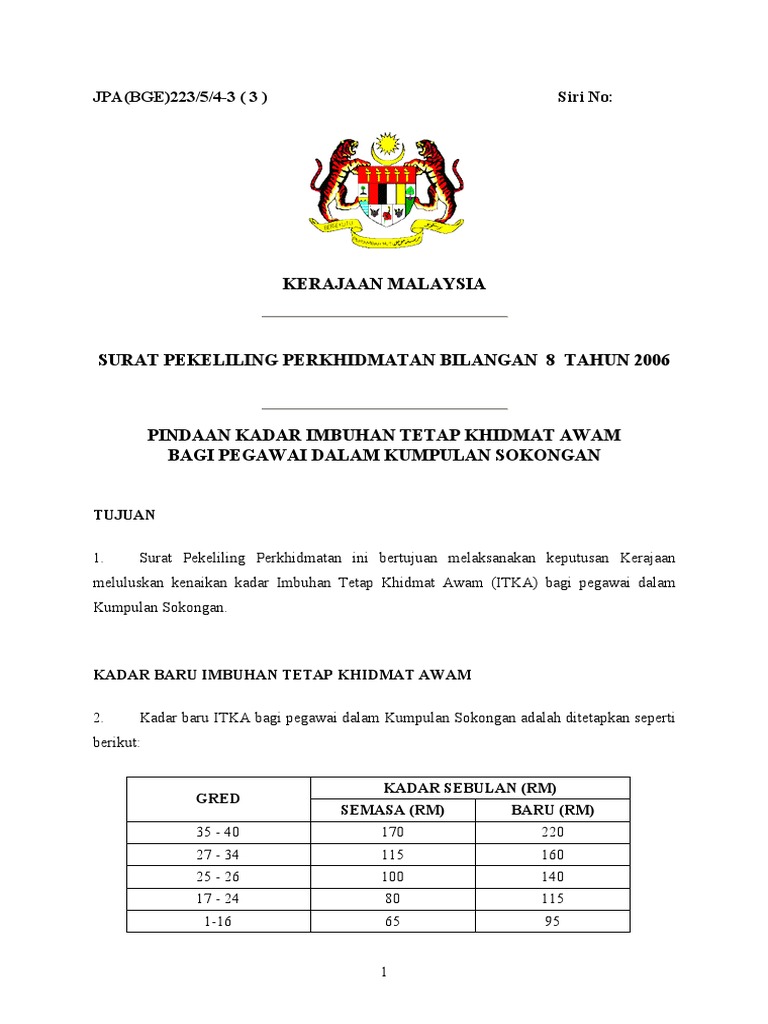 Spp Bil 08 2006 Pekeliling Pindaan Kadar Imbuhan Tetap Khidmat Awam Bagi Pegawai Dalam Kumpulan Sokongan Pekeliling Terbaru Kerajaan