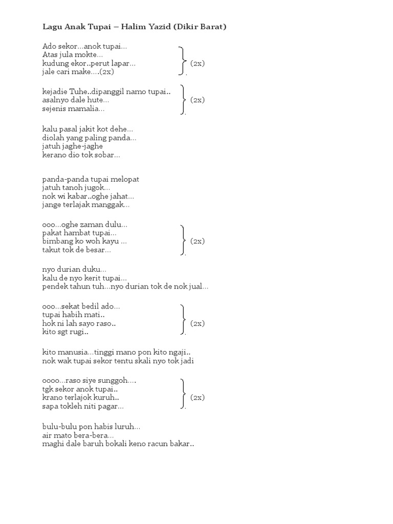 Lirik Lagu Dikir Barat Anak Tupai