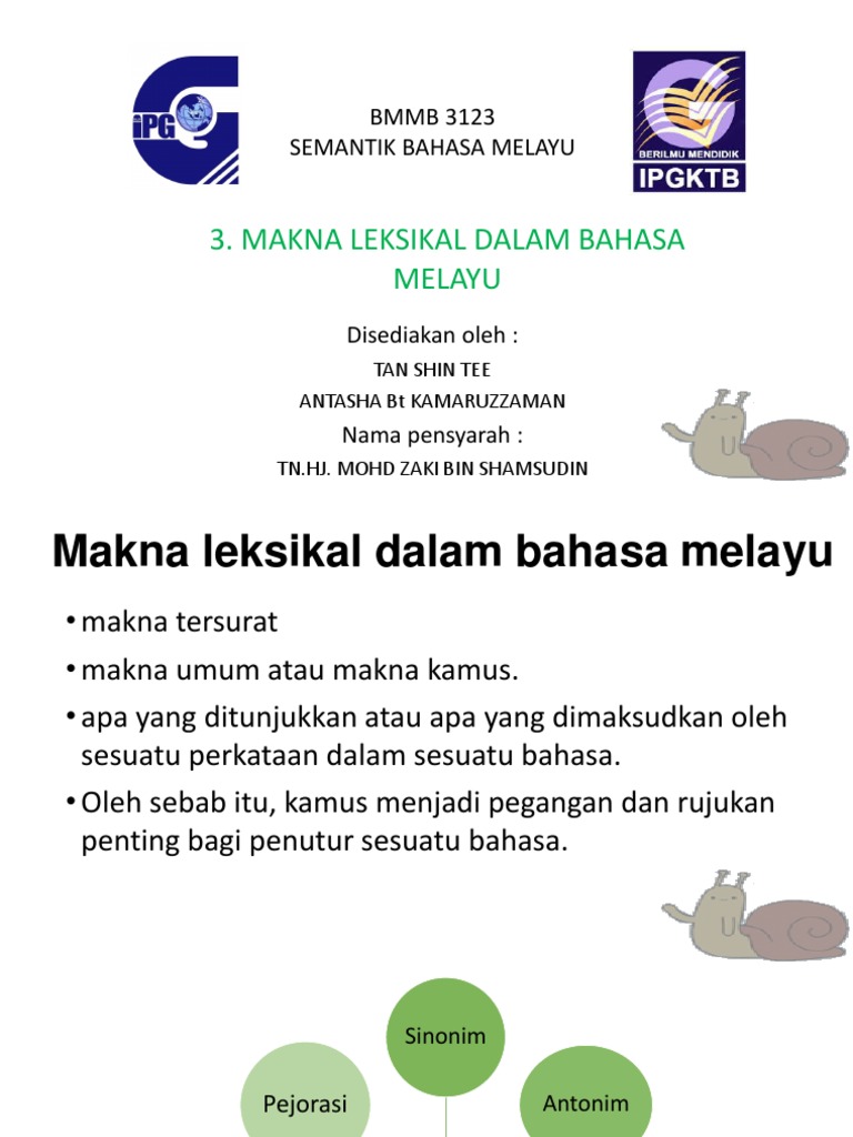 Bmm 3111tajuk 3 Makna Leksikal Pn Hamidah