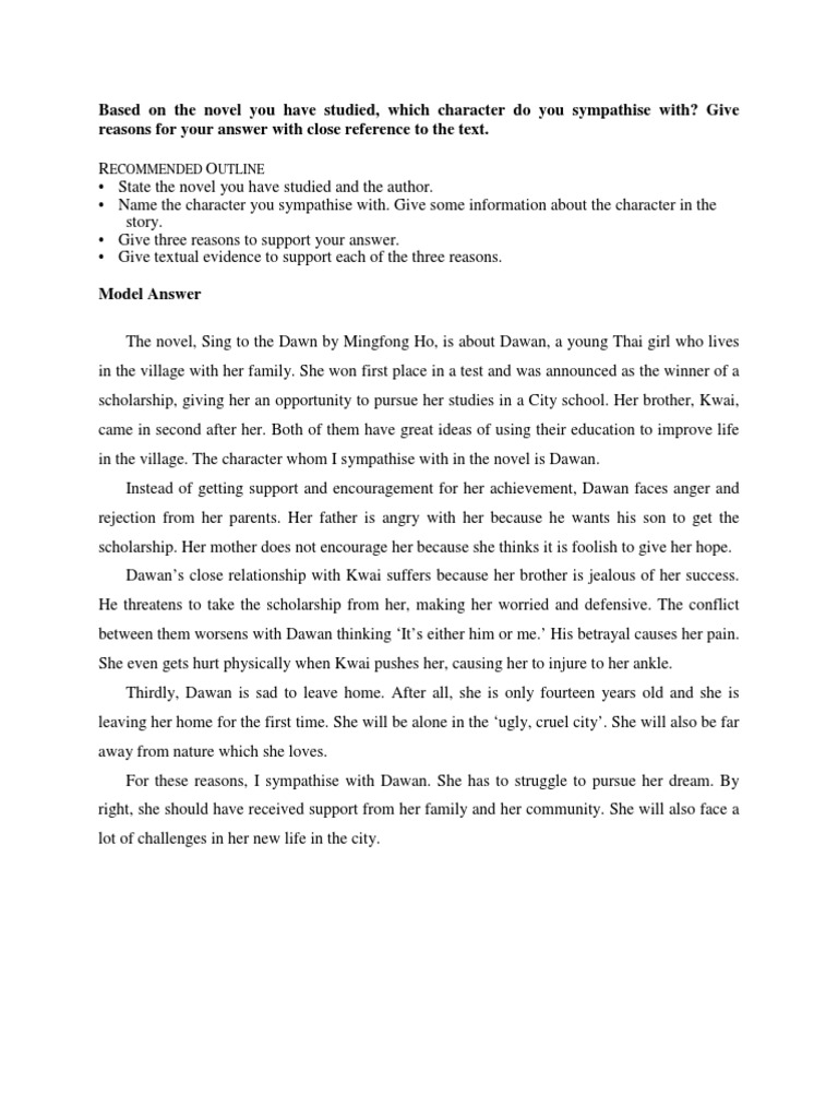 Spm Novel Sing To The Dawn Sample Answer A Character You Sympathise With