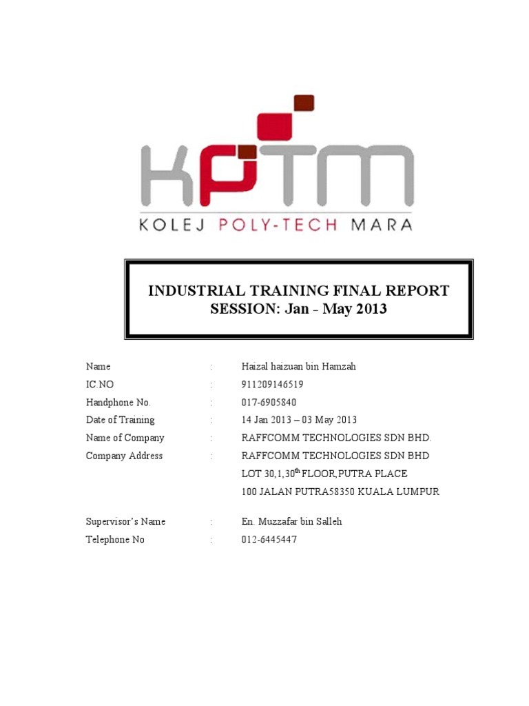 Sample Li Report Guideline 0118 Pdf Industrial Training Report Guideline Prepared By Sarina Binti Abu Bakar Industrial Training Final Report Session Course Hero