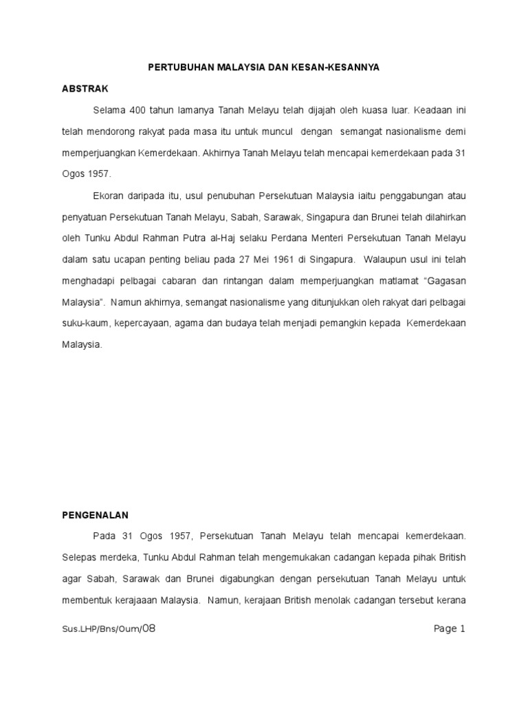 Malaysia Dan Penubuhan