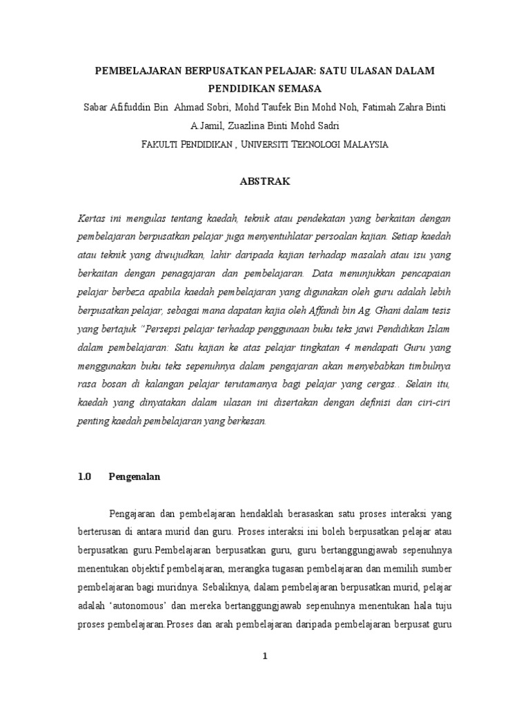 Doc Pembelajaran Berpusatkan Pelajar Satu Ulasan Dalam Pendidikan Semasa Md Yazid Academia Edu