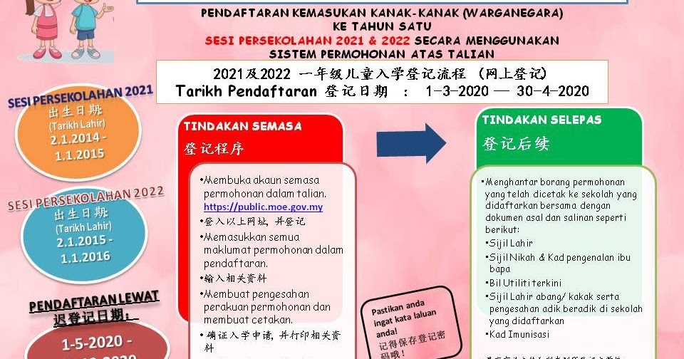 Pendaftaran Online Murid Tahun 1 Dibuka Mulai 1 Mac 2020 Wanita Ni Kongsikan Caranya Ibu Bapa Take Note Ni Keluarga