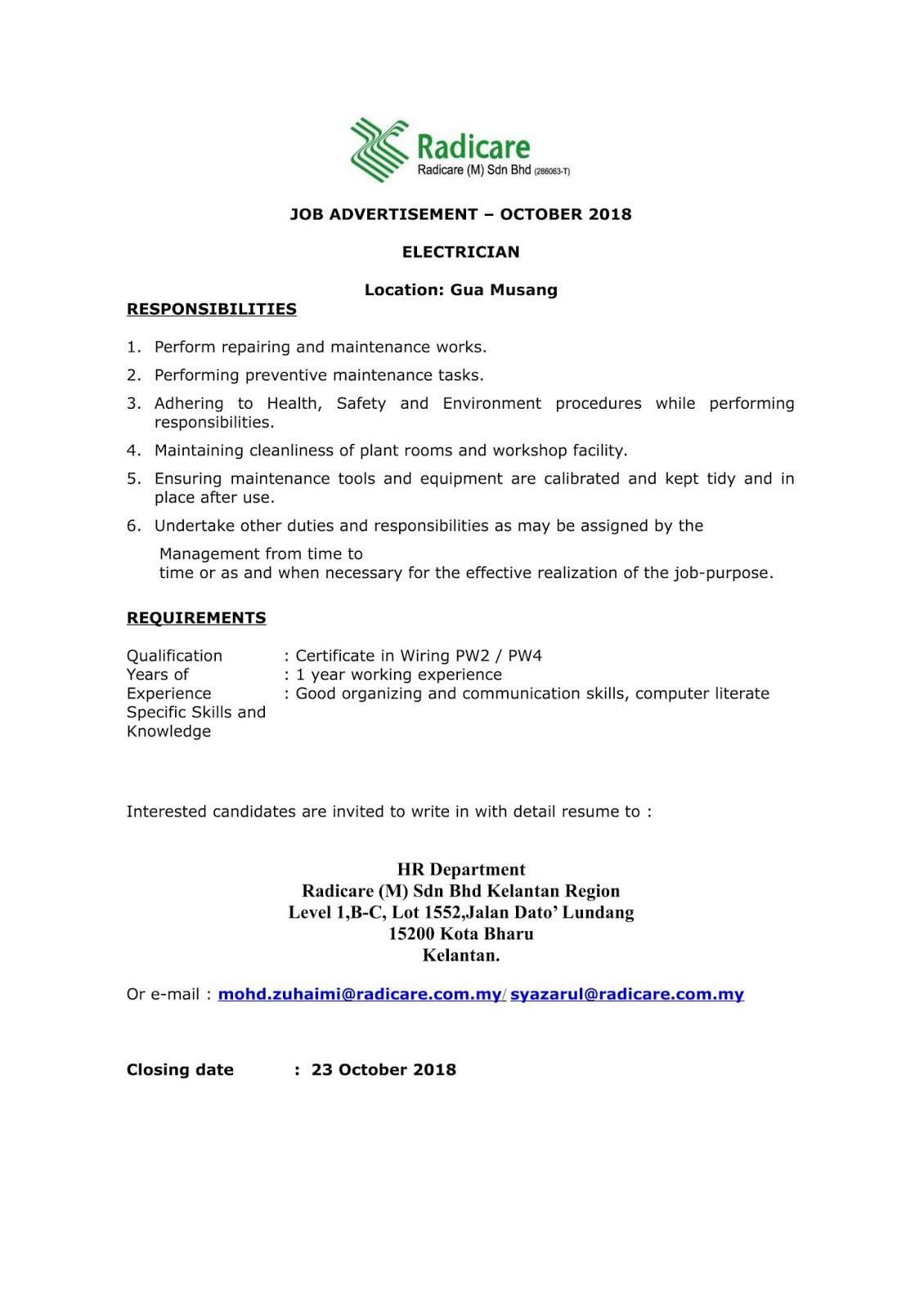 Maafsebut Jawatan Kosong Di Radicare M Sdn Bhd Facebook