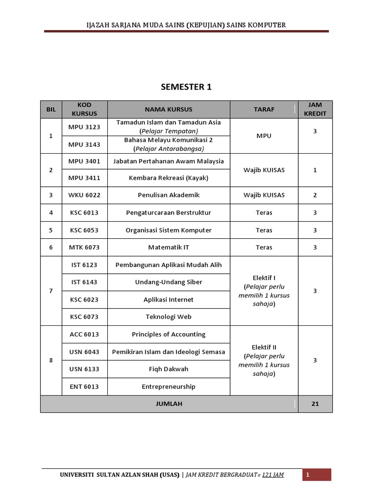 Doc 3 Sarjana Muda Sains Komputer Komputeran Internet Dengan Kepujian Smsk Ki Struktur Pengajian Mengikut Semester Emeers Shafiq Academia Edu