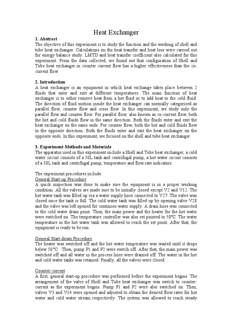 Heat Exchanger Heat Exchanger Lab Report