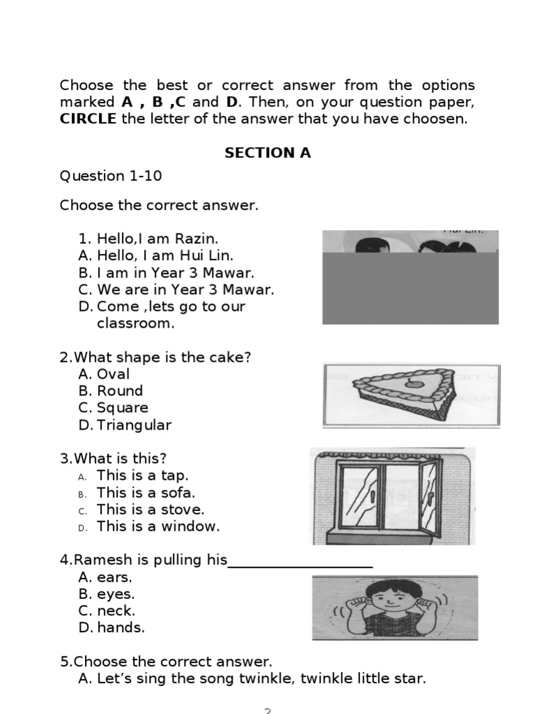 Soalan English Bi Bahasa Inggeris Tahun 2 Paper 1 Pdf Document