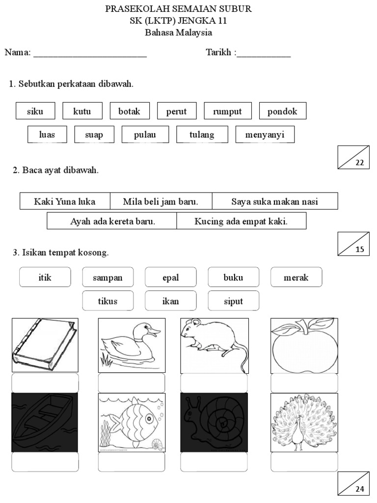 Soalan Peperiksaan Prasekolah Latihan Bahasa Melayu Tadika 6 Tahun Pdf