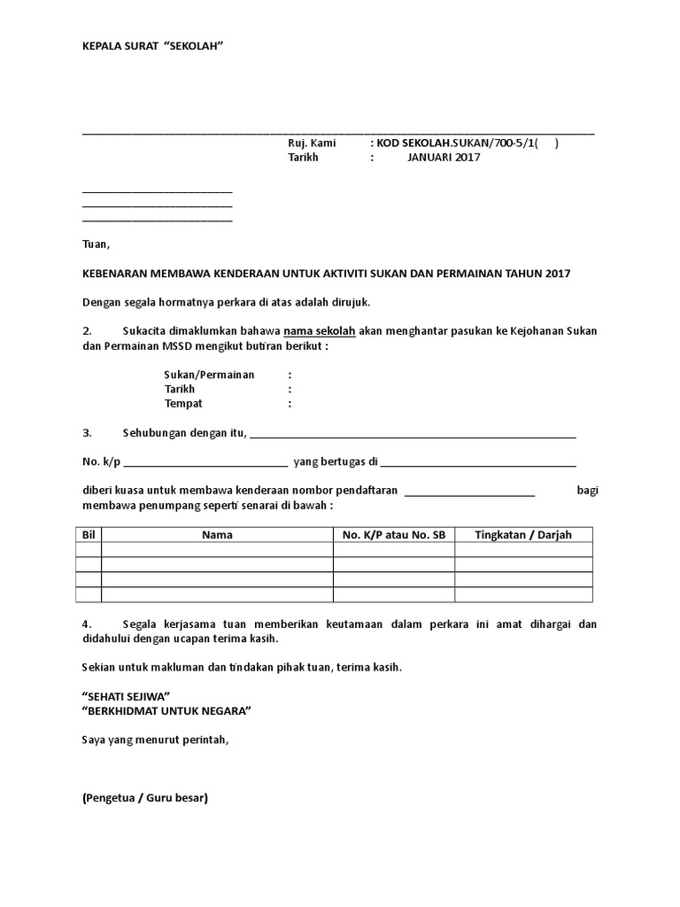 2017 01 13 Contoh Surat Kebenaran Menggunakan Kenderaan Guru Untuk Membawa Pelajar
