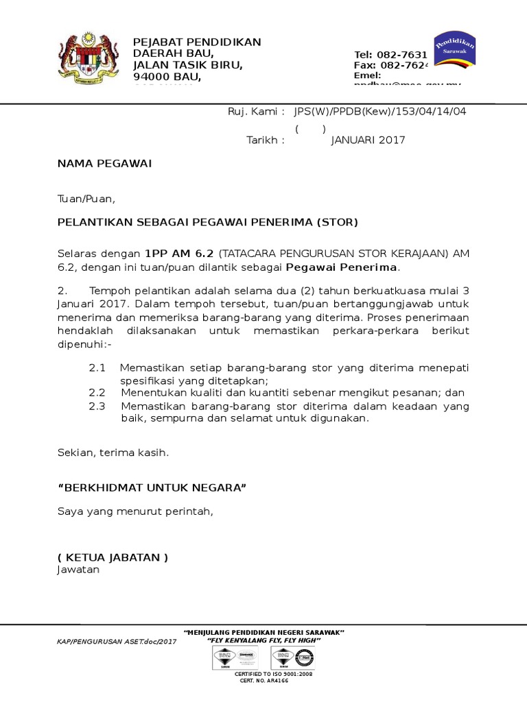 Format Surat Pelantikan Pegawai Pemeriksa Stok
