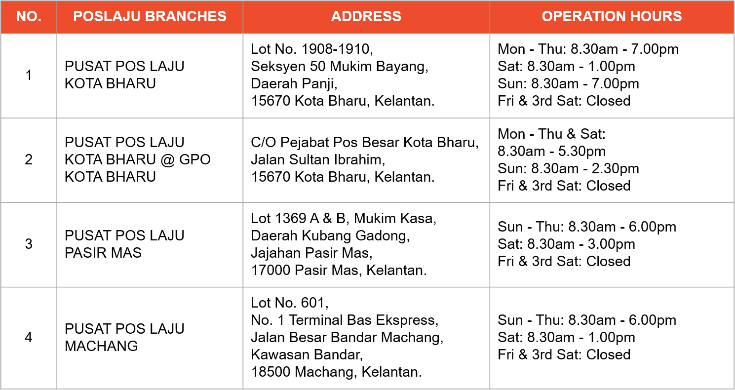 Alamat Nombor Telefon Waktu Operasi Cawangan Poslaju Negeri Kelantan Pos Malaysia Info Online